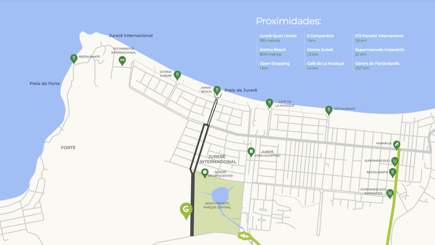 Localizado na área de maior potencial de crescimento de Jurerê Internacional, em frente ao Parque Central Jurerê IN.