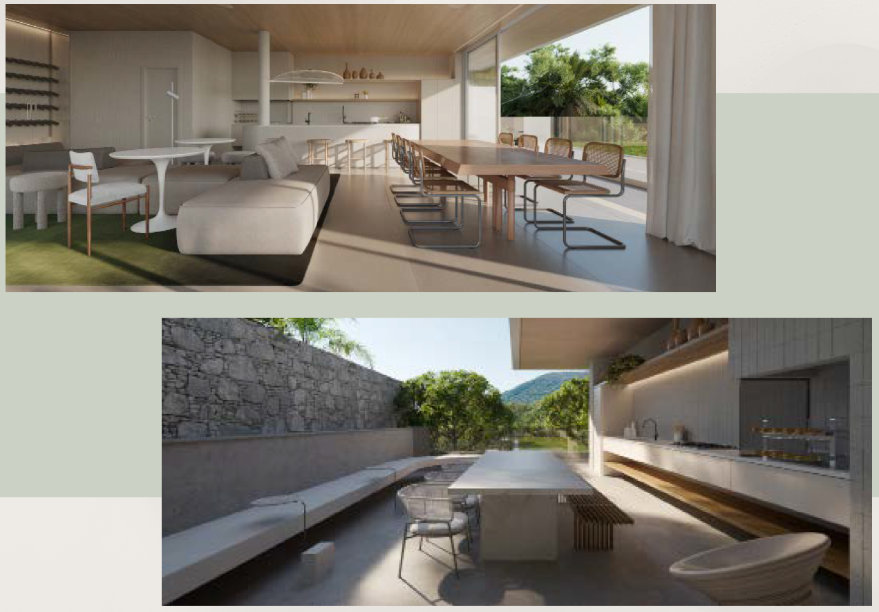 Estrutura para reaproveitamento de água, paisagismos vertical e áreas de lazer favorecendo iluminação natural.