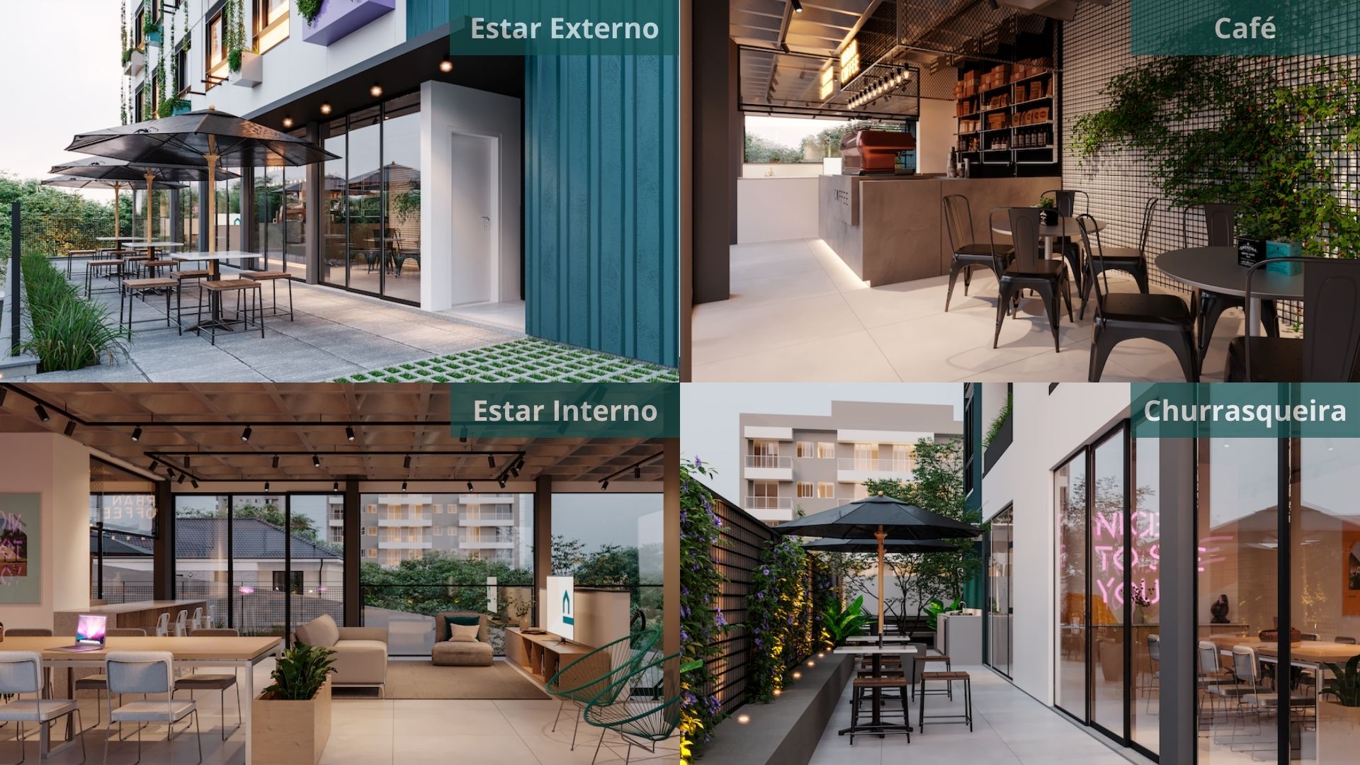 Estrutura para reaproveitamento de água, paisagismos vertical e áreas de lazer favorecendo iluminação natural.