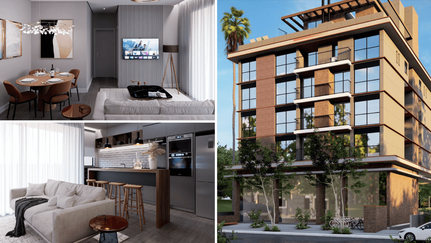 Apartamentos com infraestrutura moderna que utiliza somente com materiais e fornecedores consagrados.